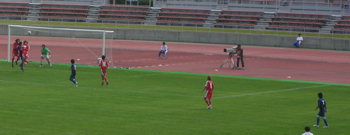 前半ロスタイム直前、右隅の村松からのフリーキックは